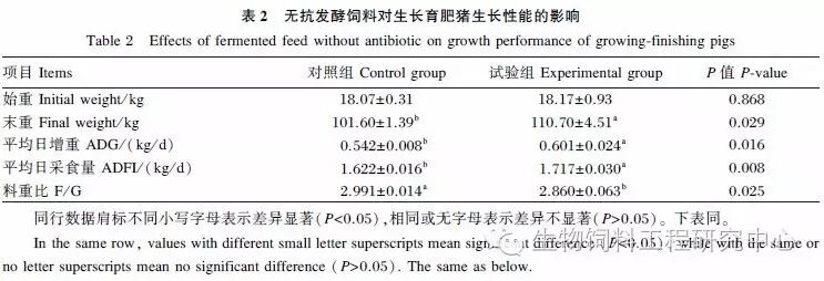 2.1 无抗发酵饲料对生长育肥猪生长性能的影响